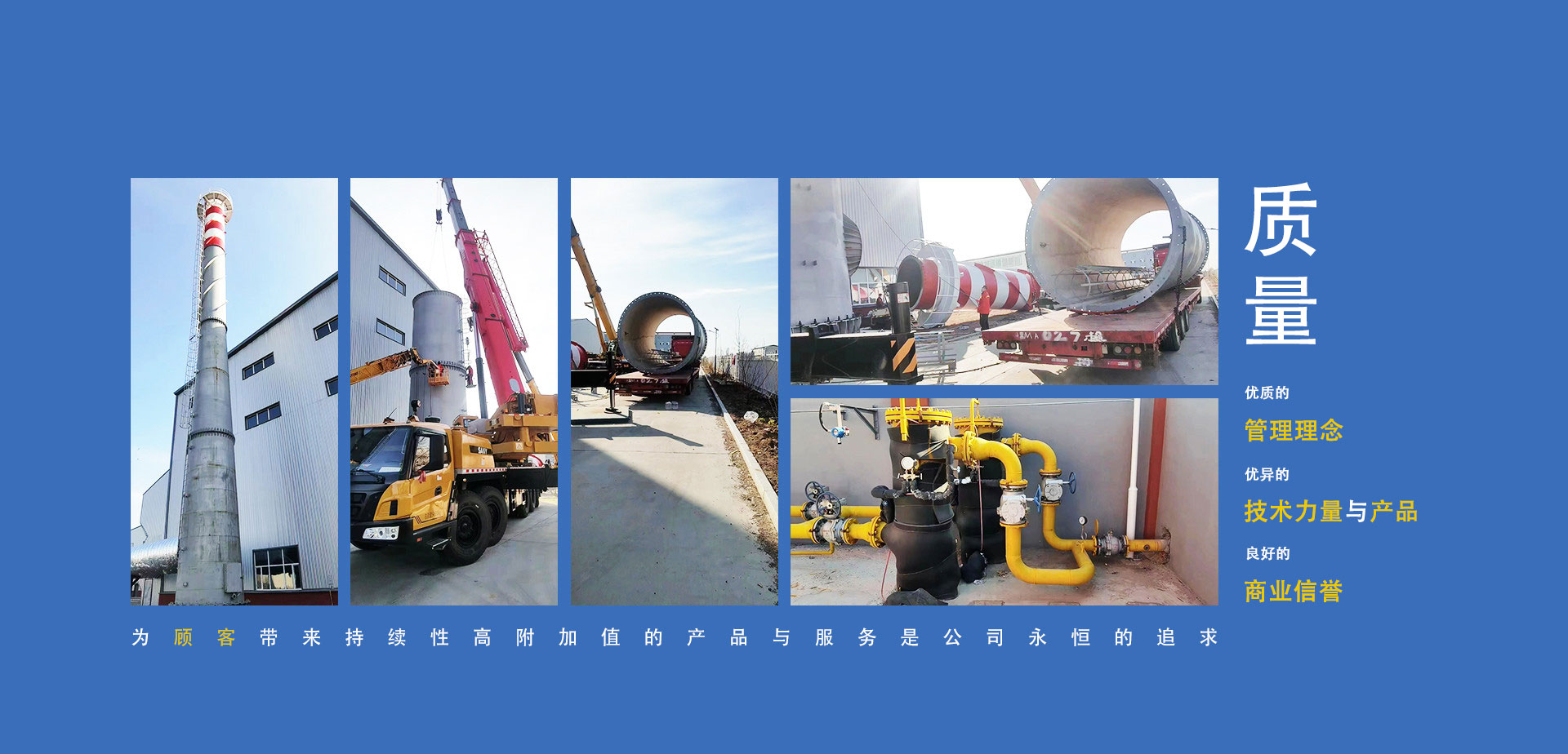 公司制定了“以質量求生存、以管理求發展、以服務增信譽”的質量方針。通過了質量管理體系、環境管理體系、職業健康安全管理體系、企業信用評價管理體系(AAA級)、五星級售后服務;取得了D1、D2級壓力容器制造生產許可資質,壓力管道元件制造生產許可資質;黑龍江省高新技術企業。
